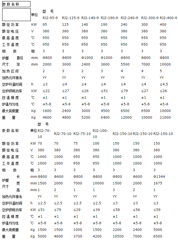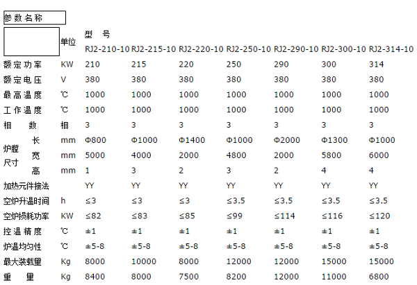 RJ2系列中溫井式電爐結(jié)構(gòu),外殼由鋼板和型鋼制成圓柱形爐體。爐蓋內(nèi)面采用弧形超輕質(zhì)節(jié)能耐火材料和勝酸鋁纖維制成。爐襯采用超輕質(zhì)0.6g/cm3節(jié)能微孔耐火保溫磚砌筑。爐襯與爐殼夾層置酸鋁纖維氈保溫,間隙填充膨脹保溫粉。電阻絲采用0Cr25Al5高電阻合金絲線成螺旋狀安裝在爐膛的擱絲磚上。爐蓋采用手動或電動升降。為了使工件均勻加熱,中型和大型井式電爐采用多區(qū)多段控溫,并按空氣溫升規(guī)律采用均溫布絲法合理分配功率,以保證爐膛溫度上下均勻一致。為保證操作安全,在升降機構(gòu)附近裝有限位開關(guān),此開關(guān)與井式電爐控制柜電源聯(lián)鎖,爐蓋關(guān)閉時接通電源。當(dāng)爐蓋開啟時限位開關(guān)即切斷控制電源,因此加熱元件的電源同時切斷,以保證安全操作。中溫井式電爐出廠時配套自動控溫柜,熱電偶。