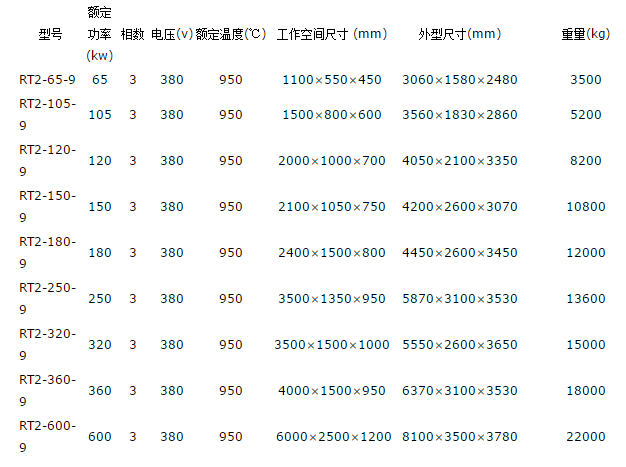 常規(guī)爐規(guī)格尺寸:(盡供參考,主尺寸有用戶自定)