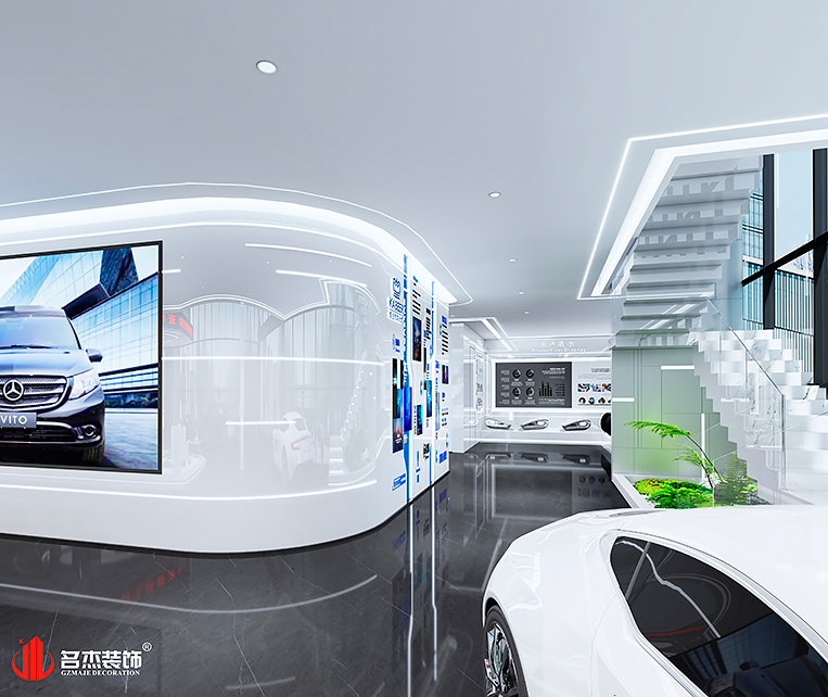 一樓前廳區域利用層高的優勢,做出寬敞且大氣的感覺,也有足夠的空間來讓汽車進去到該區域,而旁邊的展廳則是使用科技風格來打造的,這樣兩者相互配合,打造出一個時尚且具有科技感的展廳。而在其他區域則是采用時尚簡約的風格來打造,主打一個溫馨且舒適的辦公空間,讓人感受到不一樣的體驗。#廣州辦公裝修設計公司#