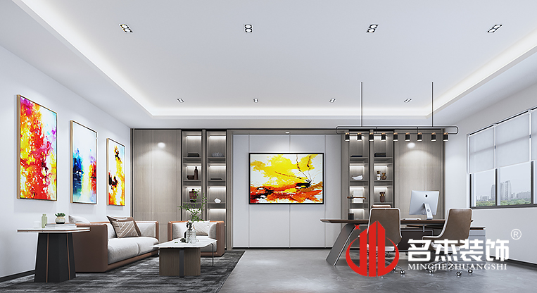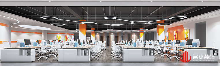 本案例是以鐘表批發和維修為主的銷售型企業,在整體設計當中多處加入圓弧形元素,來表達該企業的企業文化加入到其中,也是企業銷售的產品相互呼應,而且也在多個地方加入橙色作為點綴色,讓辦公空間看起來不那么單調,且充滿趣味。