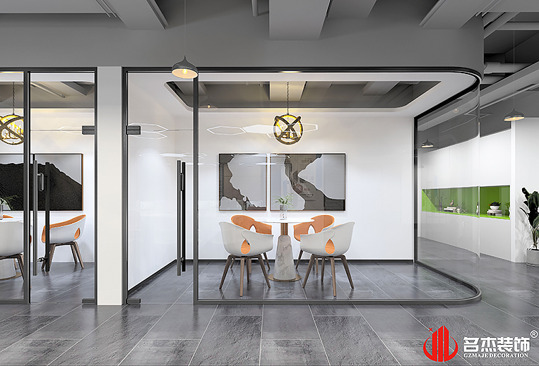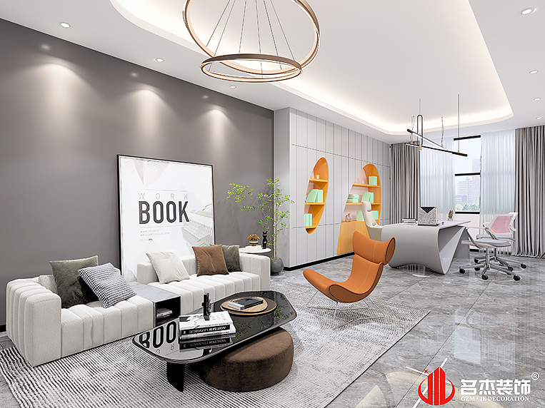 在展廳區域設計當中采用了相當吸引眼球的色彩去作為主色調,同時工業風的吊頂在色彩強烈的對比下,形成了一個非常有特色的空間。整體空間采用的是時尚潮流的風格,加上原木的元素來增加空間的自然感,感到潮流的同時,還能感受大自然帶來的舒適感。