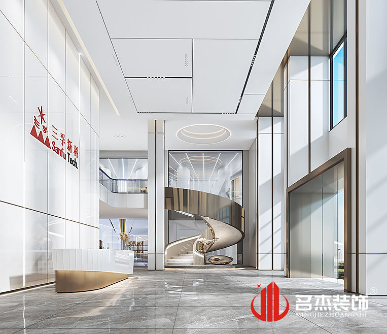 整體辦公室裝修設(shè)計當(dāng)中加入了很多不同的造型,讓空間變得更加有設(shè)計感。展廳區(qū)域則使用弧形吊頂造型,讓流動路線跟著弧線走,起著一個引導(dǎo)的作用,有著更深的沉浸感。螺旋式樓梯因其流線造型美觀,且有著典雅的氣息,深受客戶的喜愛。休閑區(qū)域則使用較為傳統(tǒng)的樣式,綠植,鵝卵石鋪墊的過道,空間中無處不透露著中式典雅的風(fēng)格。