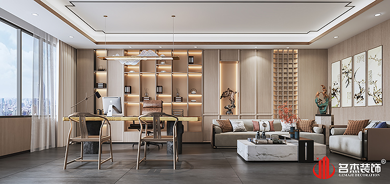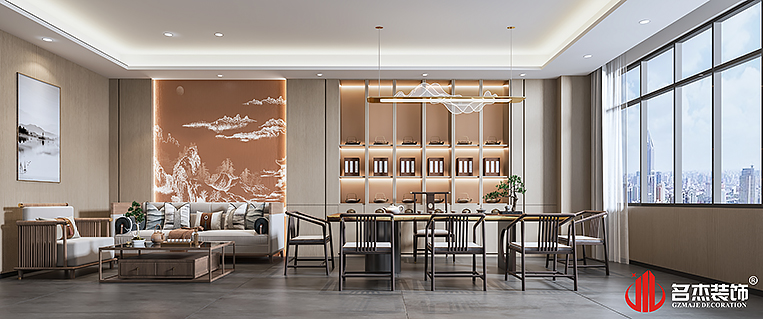 整體辦公裝修設計空間加入了造型柜子來增加空間的層次感,同時也為空間的儲物做出一個不錯的設計。加入不同的造型燈光,可以讓空間中的氛圍感更加有趣。空間也加入了該企業的材料來讓企業文化更加濃郁。