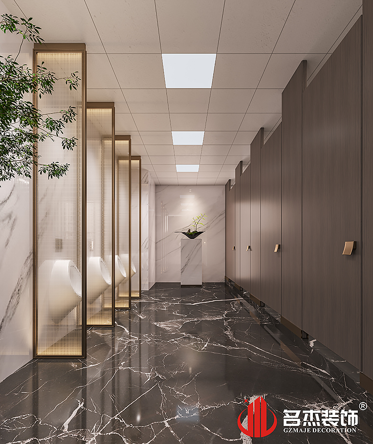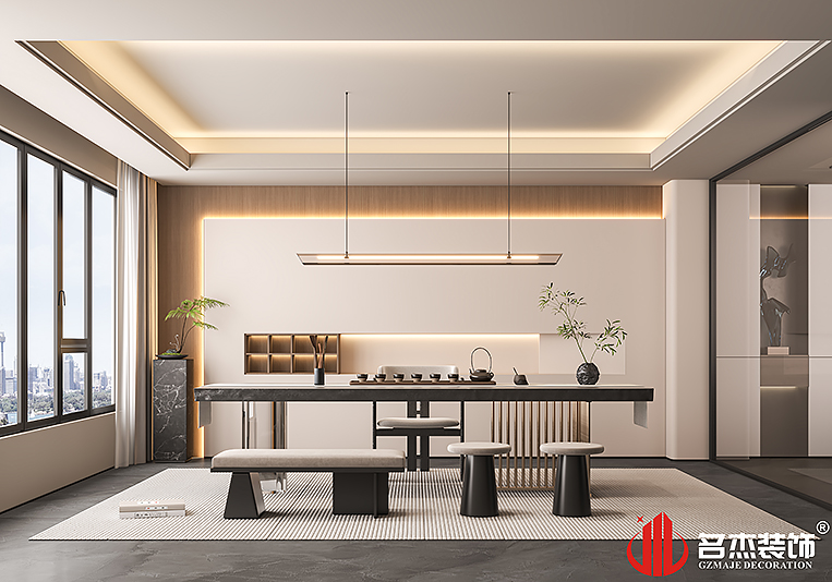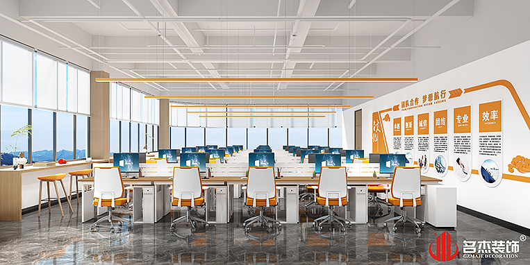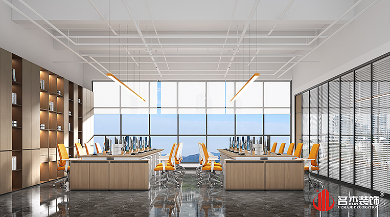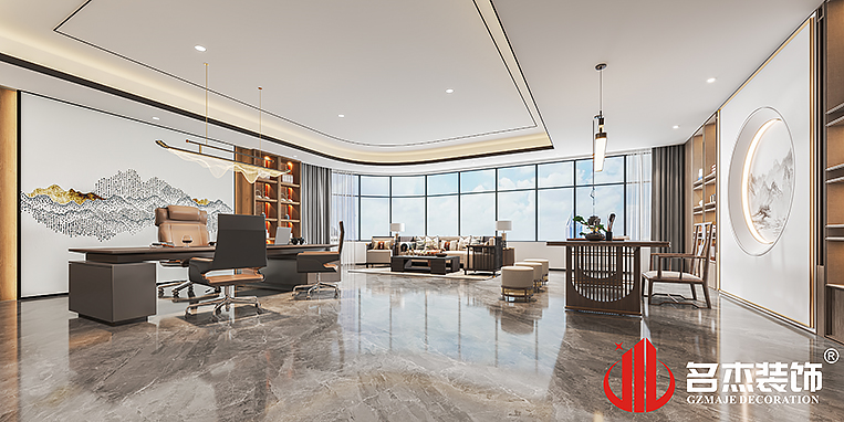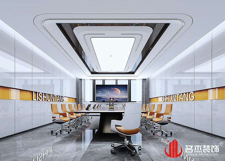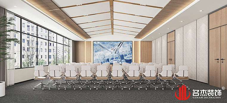 設計團隊想要打造出一個時尚且具有企業辨識度的辦公裝修設計空間,于是在裝修設計的過程中,加入不同的設計元素,融入到時尚簡約的風格中,變成一個特別有氛圍感的新型辦公裝修設計空間。部分區域使用土豪金元素來提升空間的含金量,讓空間有了一種輕奢的氛圍感。大會議室的吊頂使用類似中式屋頂的手法,讓大會議室增添了不少沉穩感。#廣州辦公室裝修#