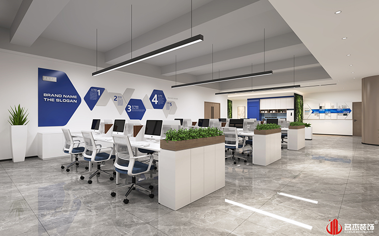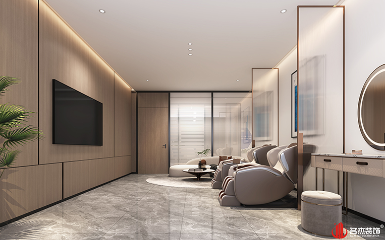 在前臺背景墻使用鋁單板作為主要裝飾,整體突出一個統一且流暢的造型,跟圓頂天花造型配合,搭配土豪金的點綴,能夠跳脫出原有時尚簡約的風格,自成一個獨特的設計風格。同時在整個辦公室裝修設計空間當中,碳晶板的加入也讓空間的設計風格更加完善,對于大面積的使用,碳晶板有著很好的整體性,出來的整體效果也更好。#廣州辦公室裝修#