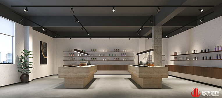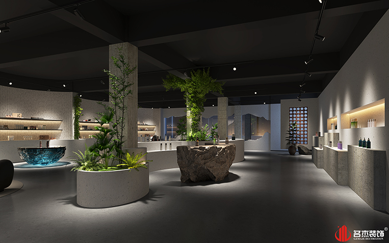 這次是一家以護膚類化妝品為主的銷售型企業(yè)。設計團隊做過很多化妝品行業(yè),對這個行業(yè)也是有一定的了解,而且這次甲方的要求跟以往的化妝品行業(yè)是不同的,是要以水泥風作為這次的主打風格,這也讓設計團隊重新思考該怎樣進行設計規(guī)劃布局了。
