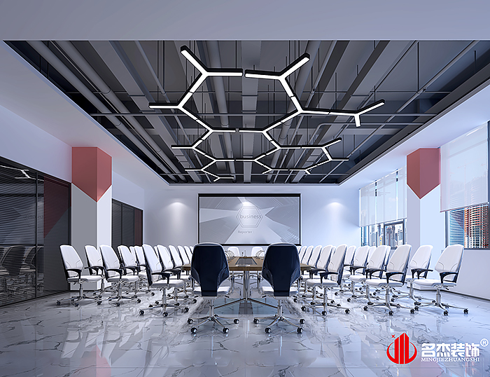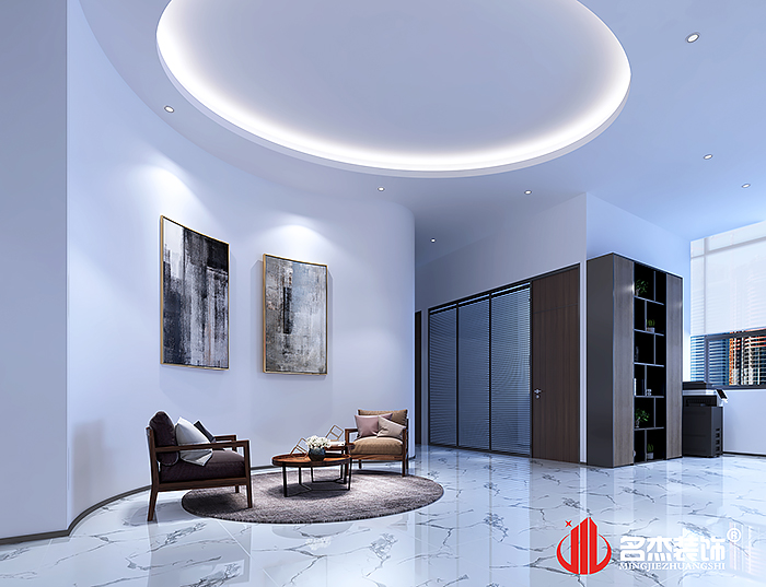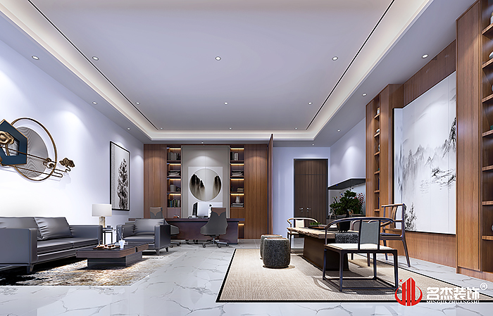 本案例是以汽車部件為主的企業,設計師通過前期的溝通和了解,通過將企業的logo顏色加入到整體的設計當中,把企業文化和品牌意識融入到整體辦公室裝修設計空間當中。也根據客戶的要求,在前臺位置設計了一個關二哥的立像作為元素,使得整體空間設計有別于外面千篇一律的設計