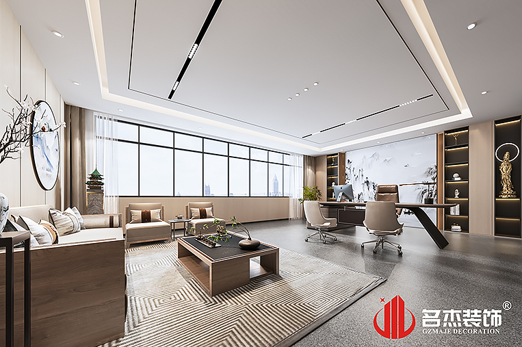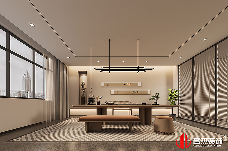 前臺區(qū)域使用有規(guī)律的線條和弧形元素進行混搭,創(chuàng)造出一種強烈的時尚感,而這樣方式也出現(xiàn)在茶室上面,通過不規(guī)則的設計手法,輔以燈帶作為裝飾點綴,展示出該企業(yè)想要突破傳統(tǒng)的想法。同時空間設計中,對于金色的使用,也是較為大膽的,多個區(qū)域中都使用到,運用恰到好處,讓空間有種輕奢的氛圍。