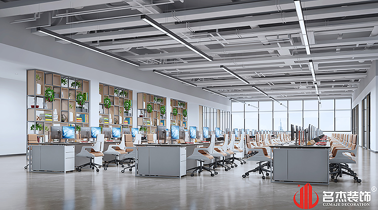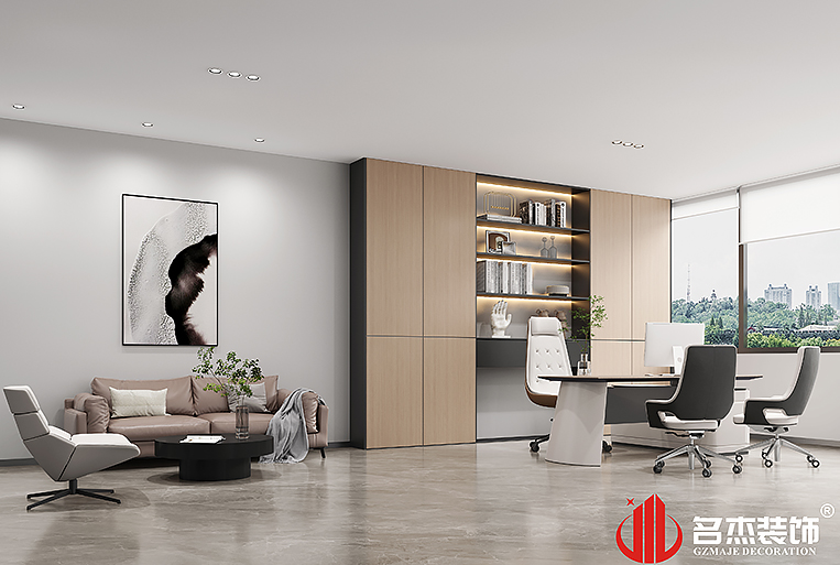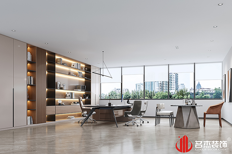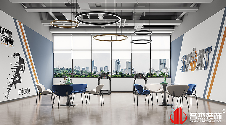 前廳是整個辦公裝修設計空間的一大亮點,前臺背景墻大理石條紋的拼接組合打破了原本傳統的設計,大理石紋路與燈飾的配合,碰撞出了不一樣的火花,加上嵌入燈帶的配合,使整個空間充滿靈動。圓形吊頂也能夠讓空間煥發出不一樣的設計層次感,兩者相互配合,共同打造出一個特別的辦公場景。