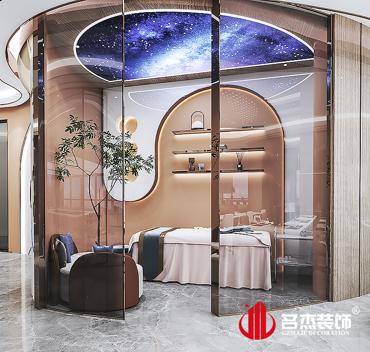 整個辦公室裝修設(shè)計在各個區(qū)域都使用設(shè)計感強(qiáng)烈的元素,從天花到玻璃隔斷,每處都能看到弧形元素的加入,合理運(yùn)用這設(shè)計元素能夠讓空間更加有層次感。熱彎玻璃的加入是可以讓整體動線更加合理,而且還可以讓企業(yè)的元素得到更好的發(fā)揮。